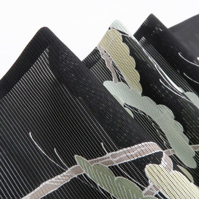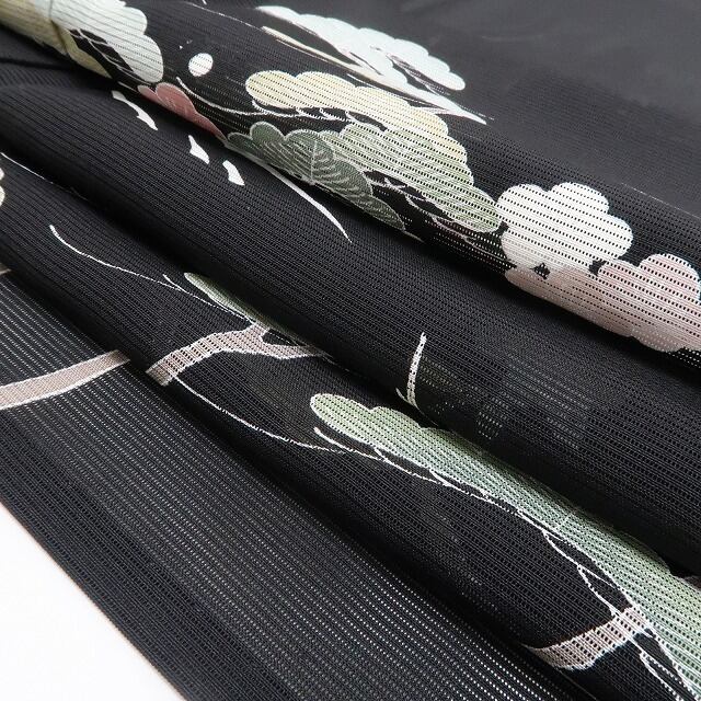黒の凛とした地色に、自然の優しい彩りが映え、上品なコントラストを生む一枚。黒地は帯合わせもしやすく、一枚お手元にあれば重宝すること間違いなしです。
