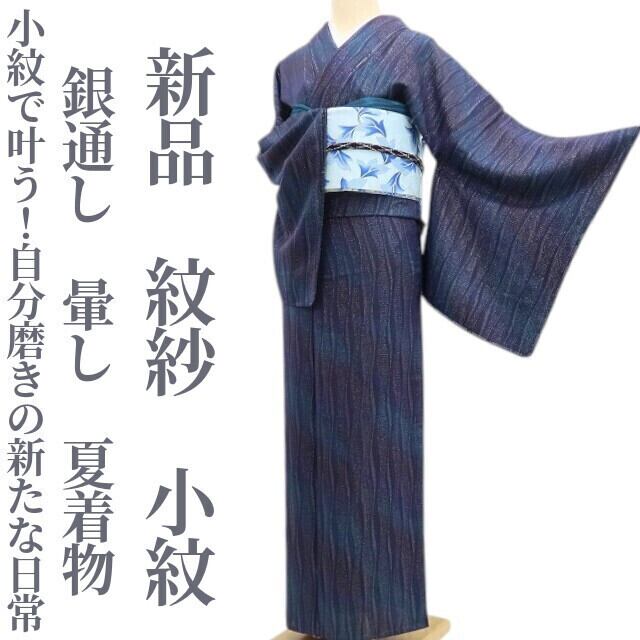 新品 紋紗 銀通し 暈し 夏着物“小紋で叶う!自分磨きの新たな日常”正絹 仕付け糸付 小紋 6078