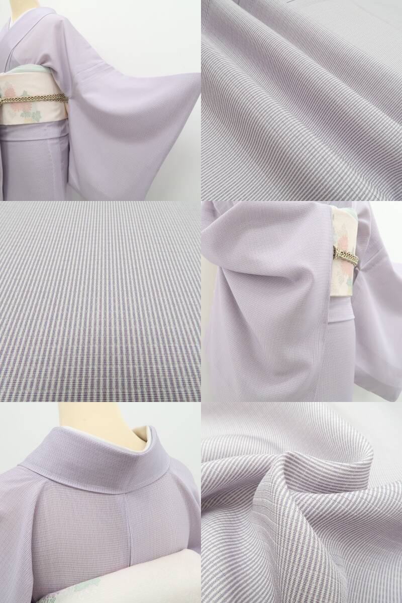 こちらのお着物は、居敷当て付の高級仕立てとなっております。お座りになられました時など薄手着物特有のよれを低減し、また下にお召になられましたものの透けを防止する効果もございます。