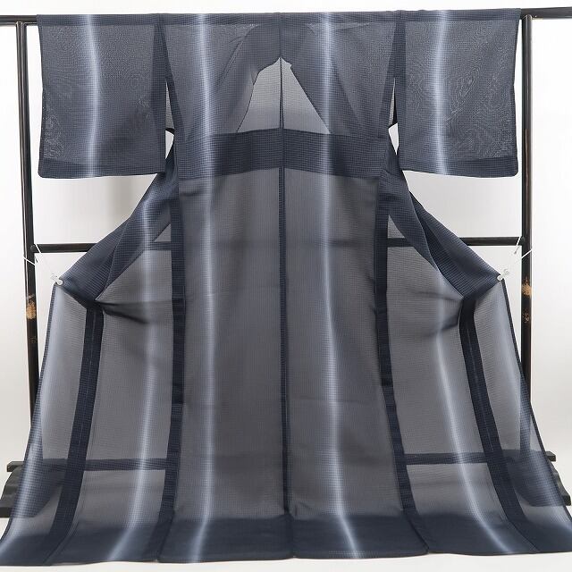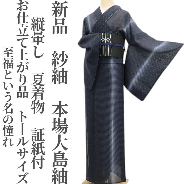 新品 紗紬 お仕立て上がり品 縦暈し 夏着物 証紙付“至福という名の憧れ”仕付け糸付 トールサイズ 本場大島紬 6092