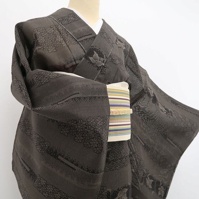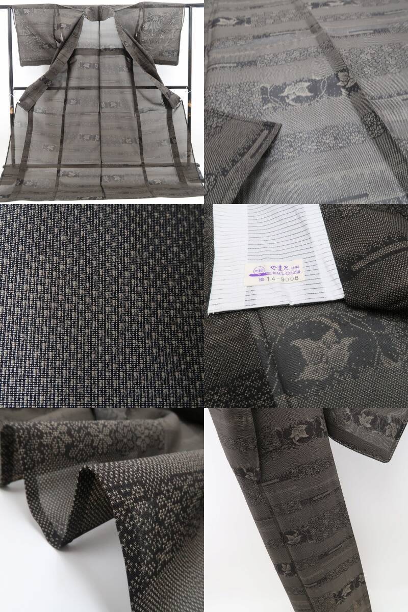 こちらのお着物は、ダークトーンの彩色で夏モダンにフォーカスした創作柄を込めています。緻密にして主張し過ぎず意匠に見え隠れする“さりげないセンス”がとても印象的なお召し物でございます。