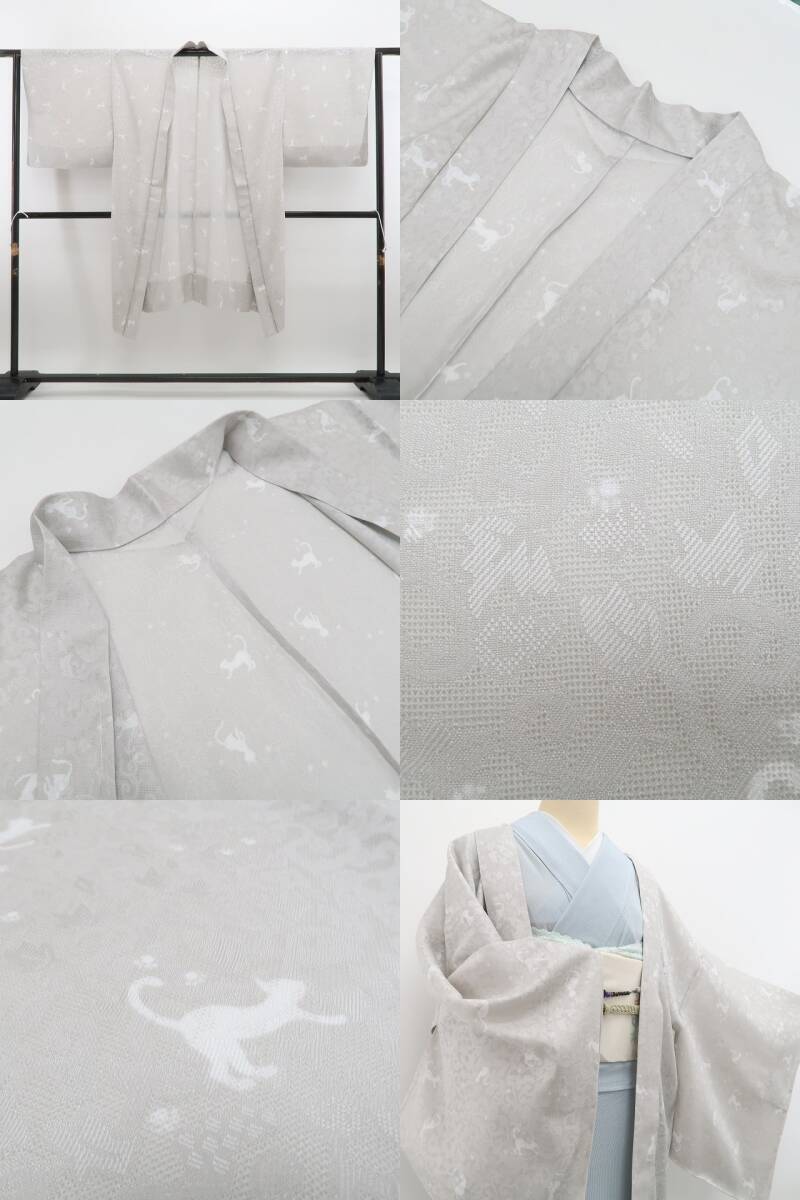 新品 紋紗 猫 夏着物 正絹 仕付け糸付”駆けまわる猫が涼を誘う”長羽織 6103