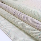 こちらは、やわらかな多彩の色と繊細に織り込まれた曲線が印象的な一枚。まるでそよぐ風をそのまま織り上げたかのような、爽やかなデザインです。