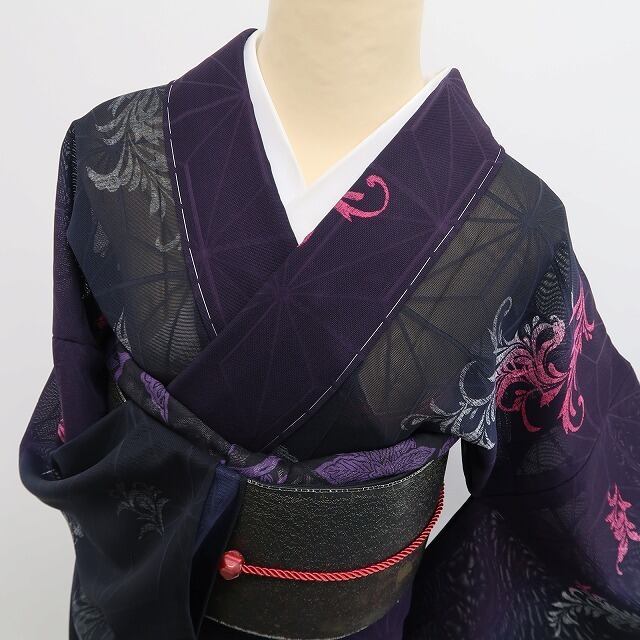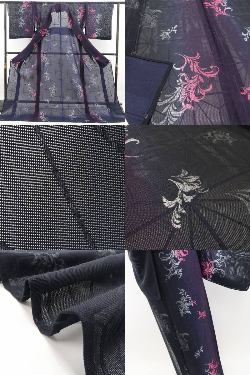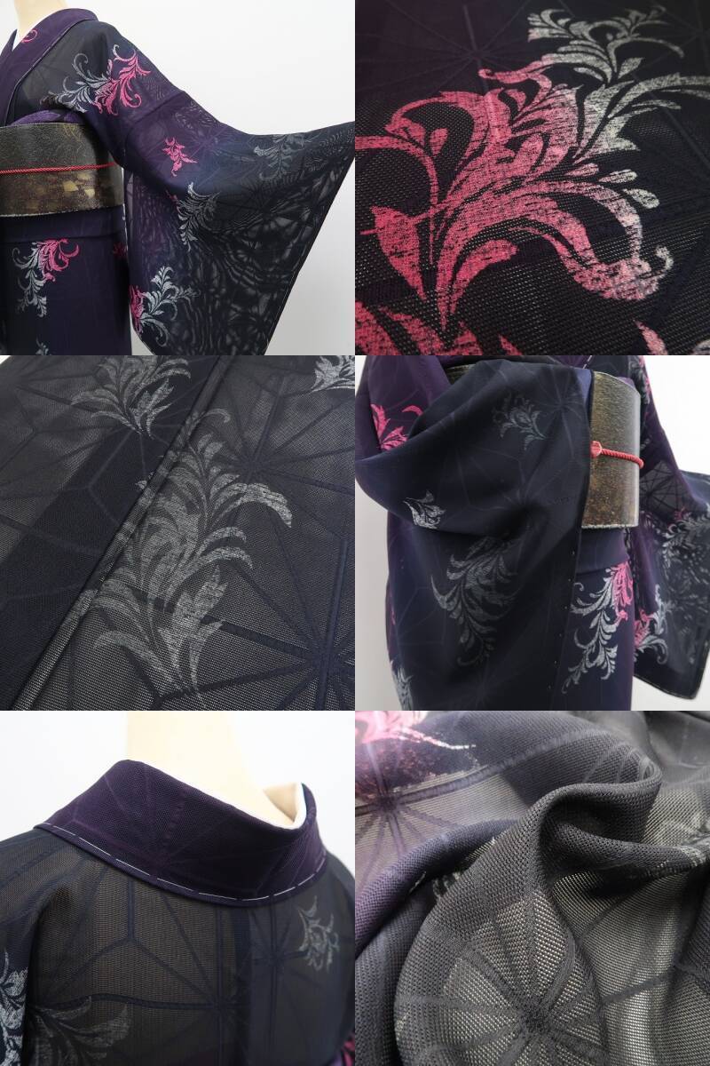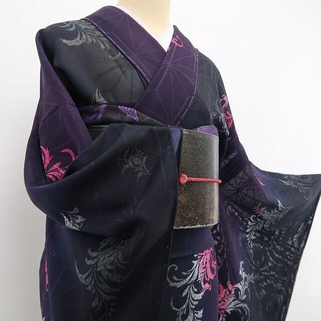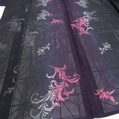 黒×葡萄色のグラデーションが艶やかに映える、紋紗の小紋でございます。