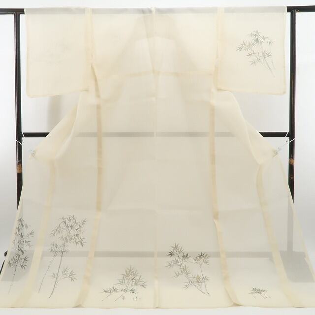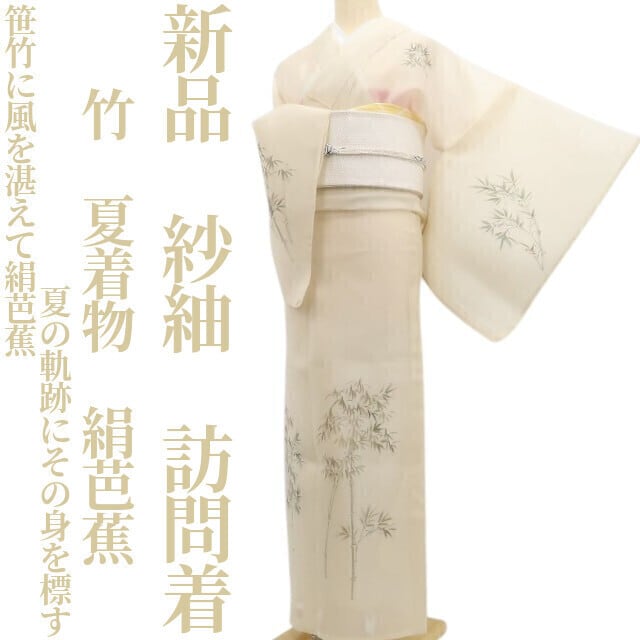 新品 紗紬 竹 夏着物 正絹“笹竹に風を湛えて絹芭蕉…夏の軌跡にその身を標す”仕付け糸付 絹芭蕉 訪問着 6142