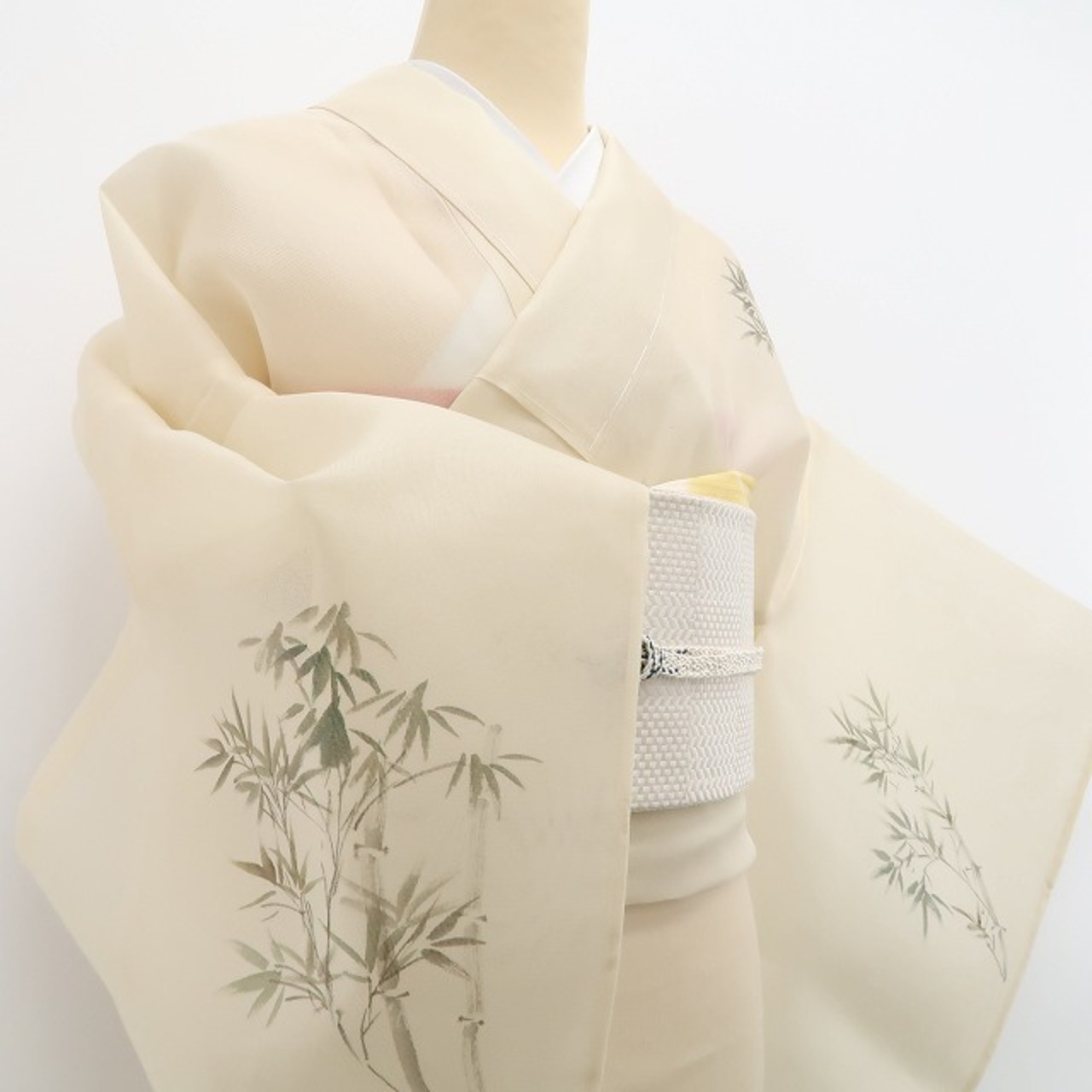 こちらのお着物は、正絹の素材感を最大限に活かしながら絹芭蕉の清涼感を意識した“笹竹”の柄行を込めております。しっかりと視覚を捉えるデザイン性は必見の価値あり!誰もが羨望の眼差しで見つめる美しい出で立ち、それはお洒落を愛でる心憎い大人の選択…“夏のお気に入り”として思わず羽織りたくなること間違いなし。