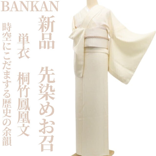 新品 単衣 BANKAN 桐竹鳳凰文 着物“時空にこだまする歴史の余韻”正絹 仕付け糸付 先染めお召 6144