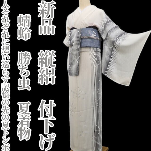 夏の風物“蜻蛉/勝ち虫”を題材にしたひと品、涼感豊かな夏着物…縦絽の素敵な付下げでございます。