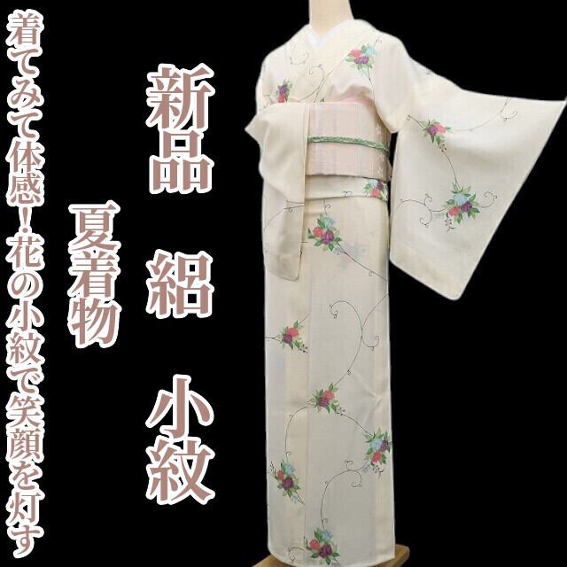 新品 絽 夏着物 正絹“着てみて体感!花の小紋で笑顔を灯す”仕付け糸付 小紋 6150