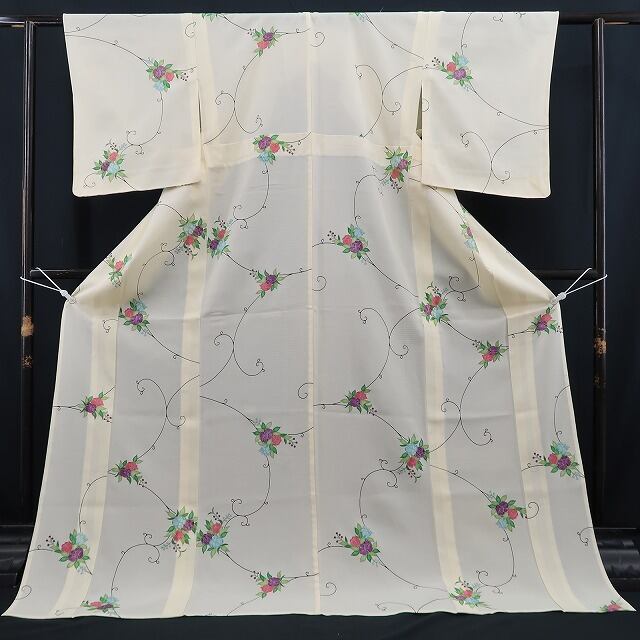 昨今、夏に和装をされる方が少なくなり希少なものとなりつつある絽のお着物は、二本の経糸を捩りながら緯糸を織り込んだもじり織で、盛夏のお召し物として涼しげでさらりとした生地質が魅力、着る方にもまた見る方にも清らかな風を感じるような涼しさを届けてくれます。