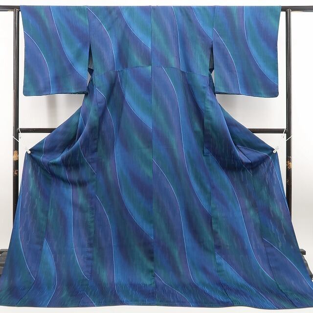 新品 紗 三眼蚕糸使用 お仕立て上がり品 夏着物 正絹 仕付け糸付 トールサイズ“変幻自在な夏のオアシス”小紋 6151