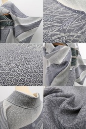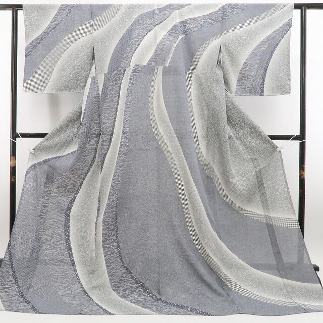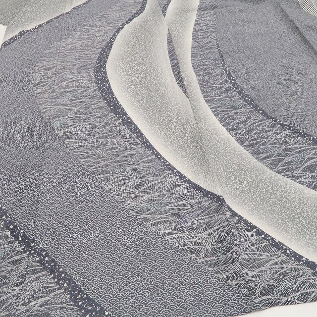 藍鼠色から紺色へのグラデーションが美しく、風がそよぐような流れのある意匠が印象的な一枚。