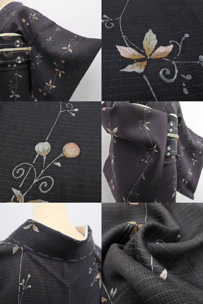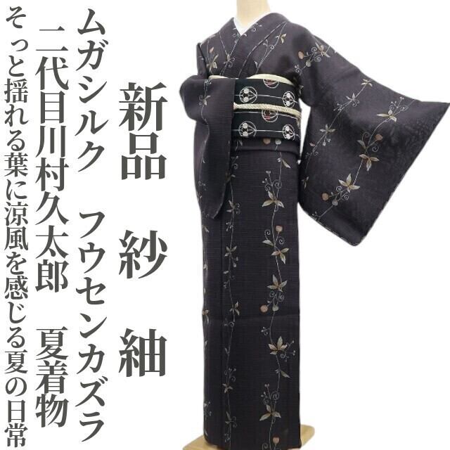 新品 紗 ムガシルク 二代目川村久太郎 フウセンカズラ 夏着物 正絹 仕付け糸付”そっと揺れる葉に涼風を感じる夏の日常”紬 6161