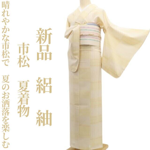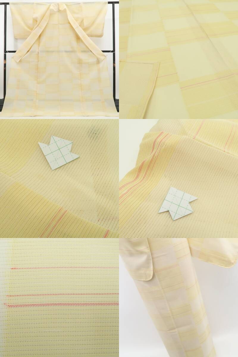 新品 絽 市松 夏着物 正絹“晴れやかな市松で、夏のお洒落を楽しむ” 仕付け糸付 紬 6165