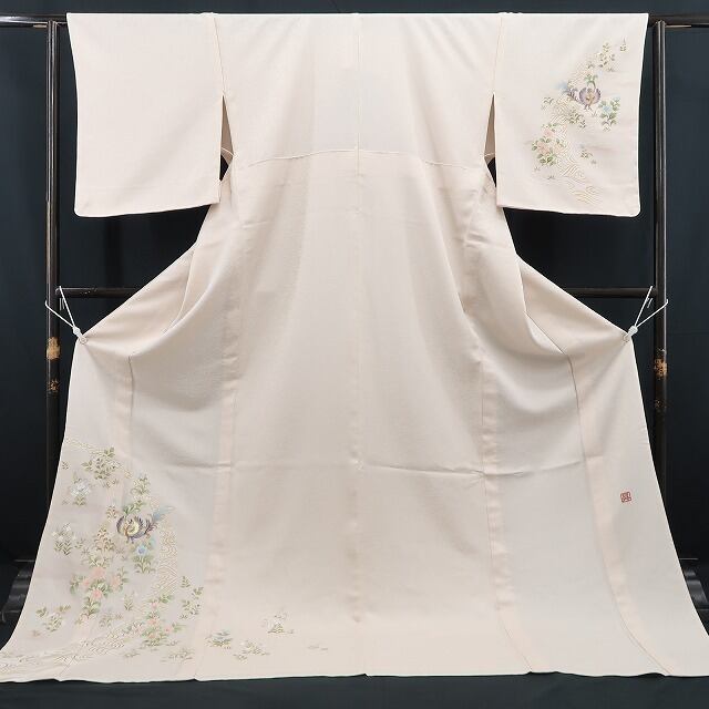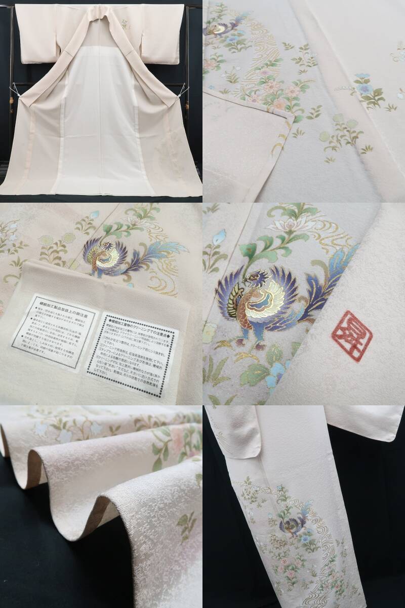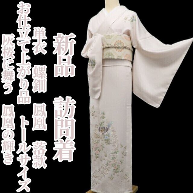新品 単衣 螺鈿 鳳凰 落款 お仕立て上がり品 着物 仕付け糸付 トールサイズ”灰桜に舞う、鳳凰の輝き”訪問着 6119