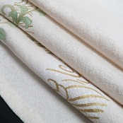 角度によって表情を変えるそのきらめきは、金糸や銀糸とはひと味違う、まさに“幻の輝き”。