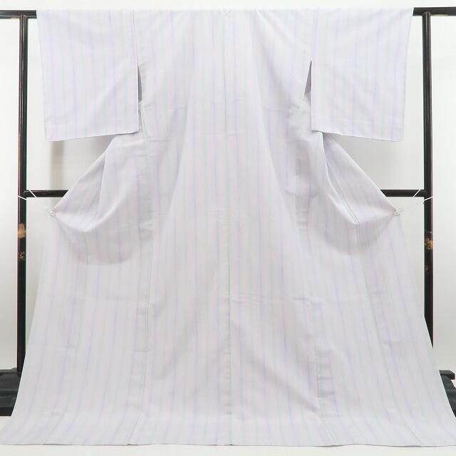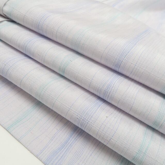 淡くやさしい白藤色に、筬波織(おさなみおり)の揺らぎが穏やかなアクセントを添える、単衣の紬でございます。