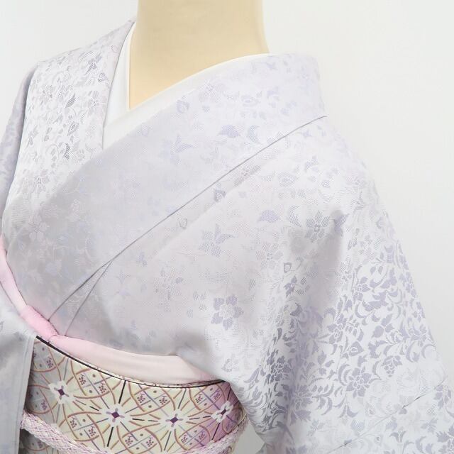 やさしい色調と繊細な唐花文様は帯合わせもしやすく、和装の頼れる一枚として活躍してくれることでしょう。