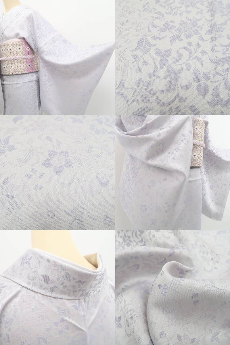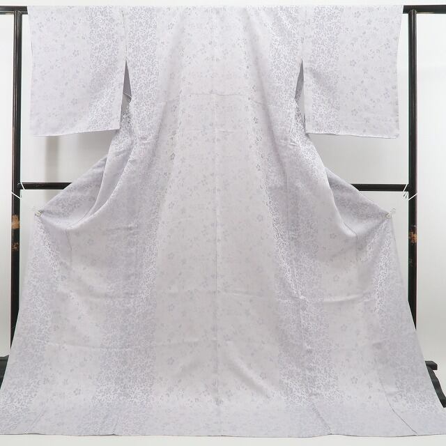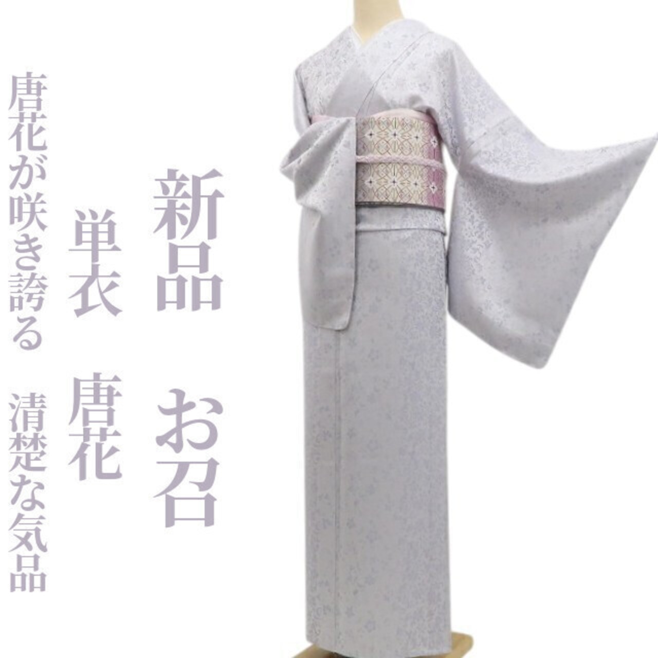 新品 単衣 唐花 着物 正絹 仕付け糸付”唐花が咲き誇る、清楚な気品”お召 6131