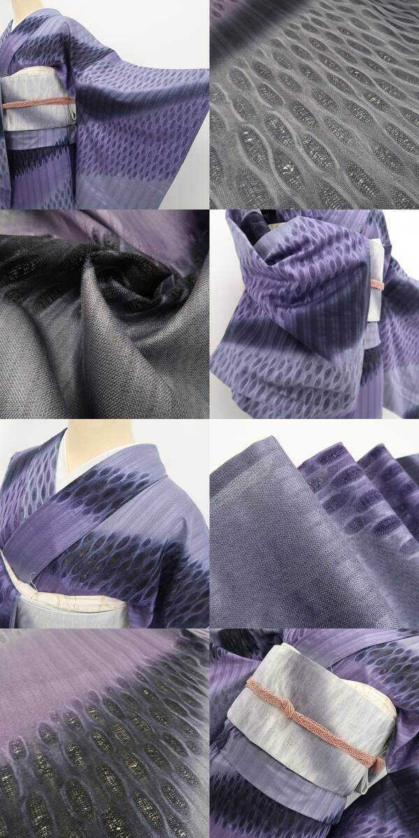 経糸を竹櫛で梳くように動かし、平坦な生地に模様を施し、独特の凸凹や揺らぎを表現して涼し気な印象を生む青柳が開発した特許取得の“櫛引き織”、草木染ならではの自然な深みのある色合いを菫色×深紫色で解き、心酔わせる薫りを漂わせながら縦縞や沸き立つ涼味が影を連れて見え隠れ、隠し切れない涼味と洒落味がモダンに翔ける世界を生み出しました。