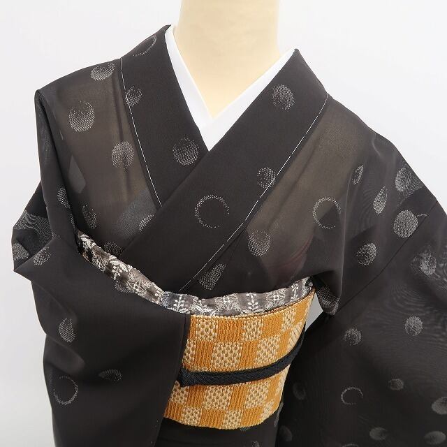 観劇や街歩き、お食事会やご友人とのお出かけなど、さまざまな夏のシーンで活躍してくれる一枚。落ち着きのある鉄黒色は、帯や小物で印象を変えやすく、コーディネートの楽しみも広がります。