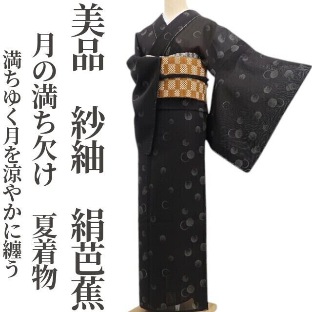 美品 紗紬 月の満ち欠け 夏着物 正絹”満ちゆく月を涼やかに纏う”仕付け糸付 絹芭蕉 6184