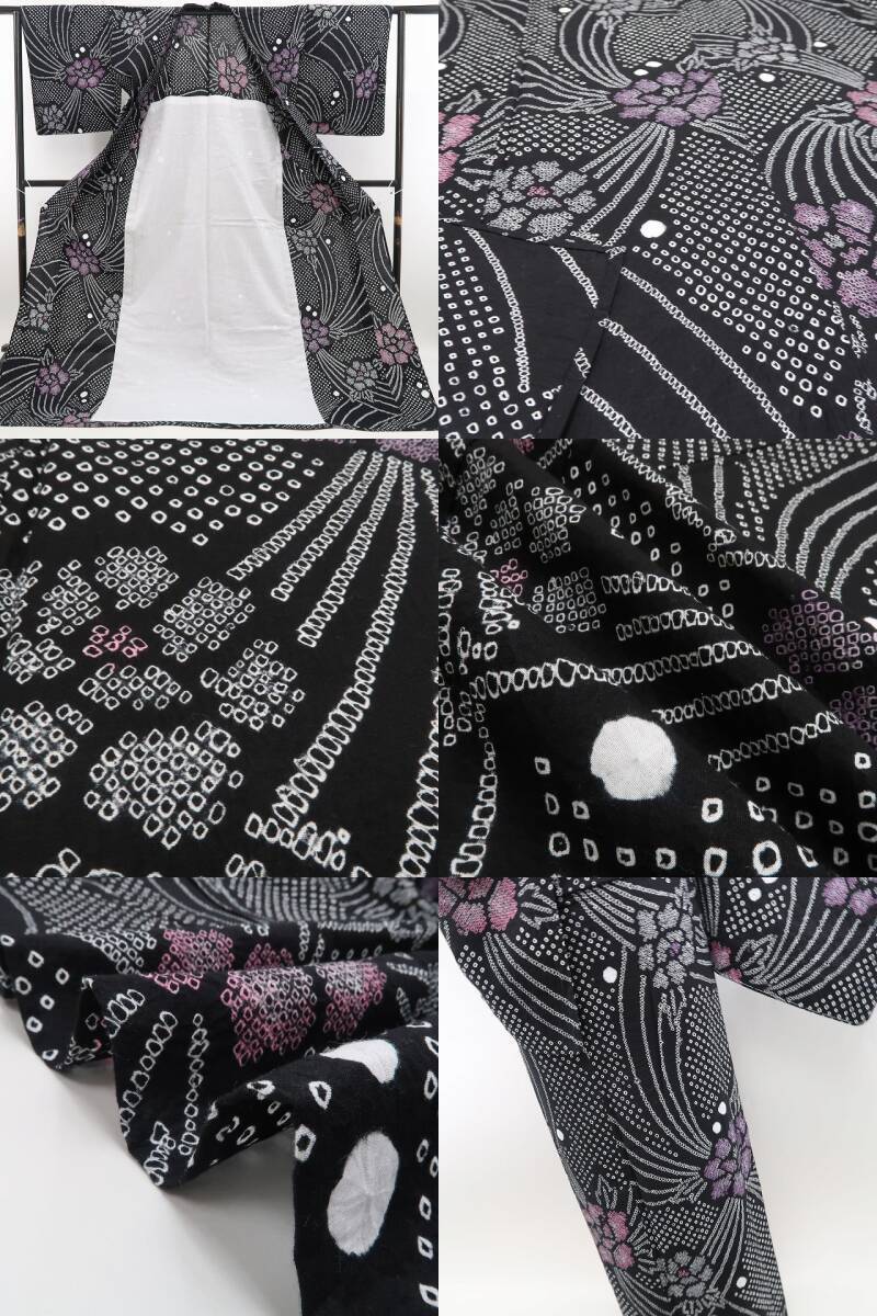 新品 有松鳴海絞り 牡丹 夏着物 綿 仕付け糸付”咲き誇る牡丹で凛と華やかな大人レディ”トールサイズ 高級浴衣 6188