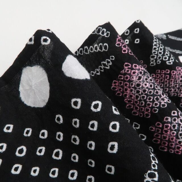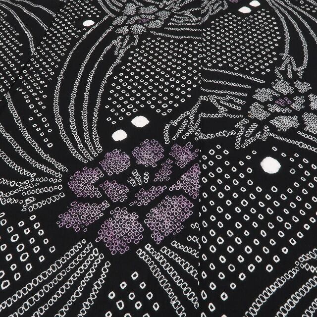 有松鳴海絞りの技法で表現された花々は、存在感の中に手仕事ならではのやさしい風合いが感じられます。