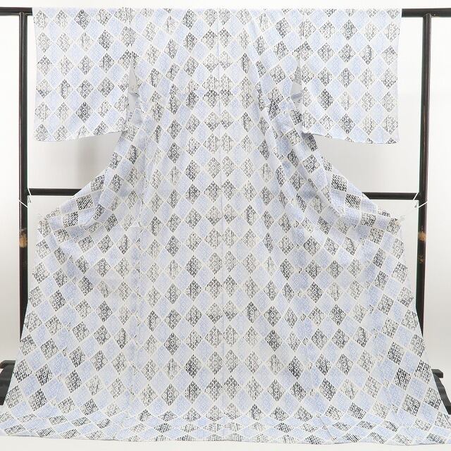 新品 絽 夏着物 正絹 仕付け糸付”ダイヤの煌めき、遊び心とともに。涼やかに魅せる和モダン”小紋 6194