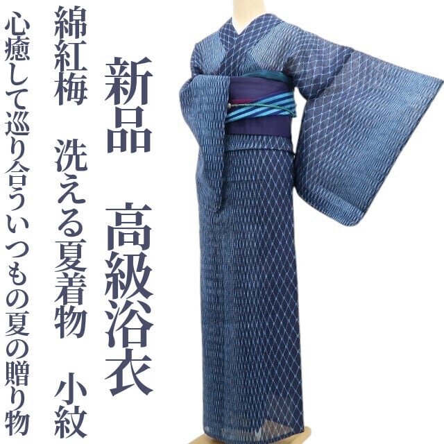 新品 綿紅梅 洗える夏着物“浴衣と着物で得した気分!心癒して巡り合ういつもの夏の贈り物”仕付け糸付 小紋 高級浴衣 6195