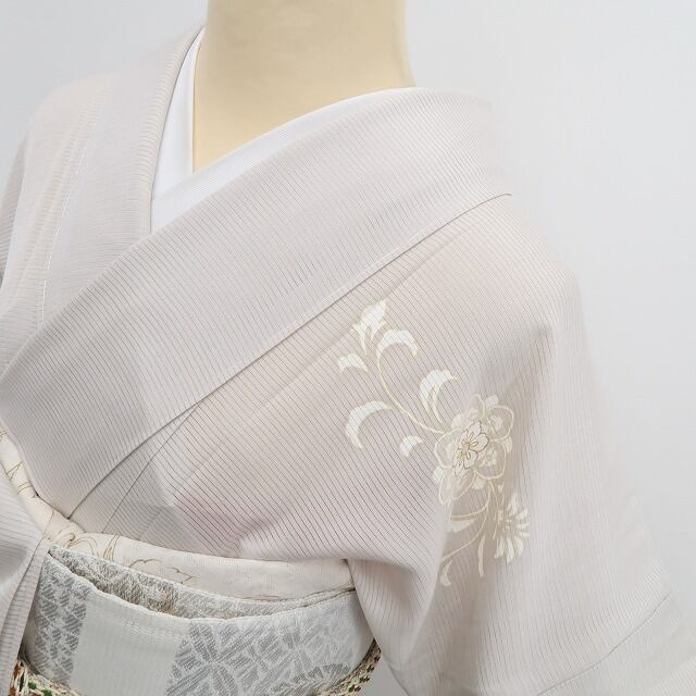 昨今、夏に和装をされる方が少なくなり希少なものとなりつつある絽のお着物は、二本の経糸を捩りながら緯糸を織り込んだもじり織で、盛夏のお召し物としてさらりとした生地質が魅力、着る方にもまた見る方にも清らかな風を感じるような涼しさを届けてくれます。