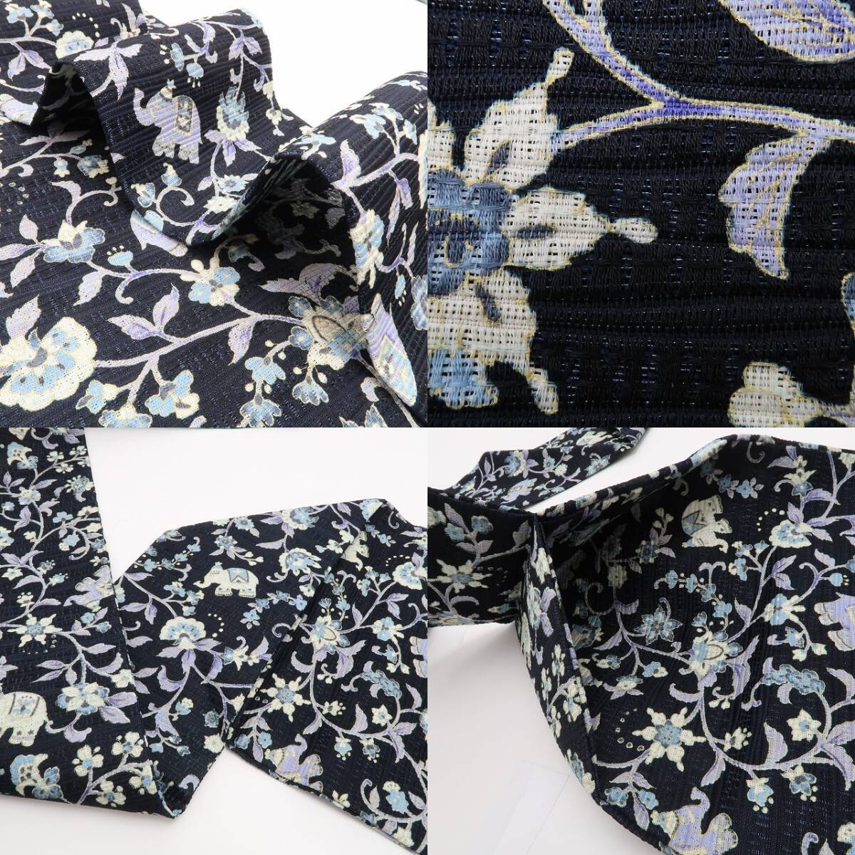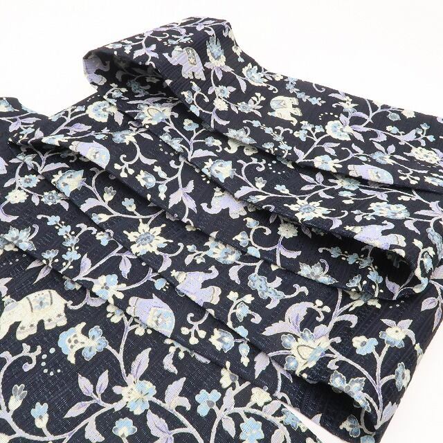 象は、着物や帯に度々登場する人気の柄行、優しく包み込むような穏やかな表情が特徴。ヒンドゥー教に於いては神聖化された生き物でガネーシャというゾウの頭をした神様は富の象徴として、同じく仏教においても普賢菩薩は白い象に乗って現れるなど様々な象徴として古より崇められています。