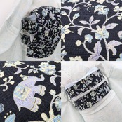更紗は、緞子・金襴・銀蘭・間道・錦・モール・風通などとともに中国の他・東南アジア・インド・ペルシアを起源とする絹織物の呼び名のひとつで、日本では室町時代に中国との貿易により名物裂として伝来しました。また、更紗模様のモチーフは、草花や鳥・獣・人物のほかに幾何学模様など多岐に渡り、特に固定されたものはありません。16世紀末のインドで極上多彩の木綿布をsarasoまたsarassesと呼んだところからついた名と言われています。