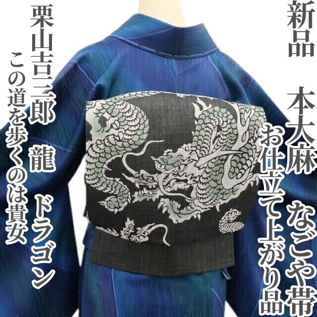 新品 本大麻 栗山吉三郎 龍 ドラゴン お仕立て上がり品 夏着物“この道を歩くのは貴女”紅型 なごや帯 6202