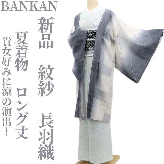 新品 紋紗 BANKAN 夏着物 正絹“貴女好みに涼の演出!面影留めて大人が香る”仕付け糸付 ロング丈 長羽織 6207