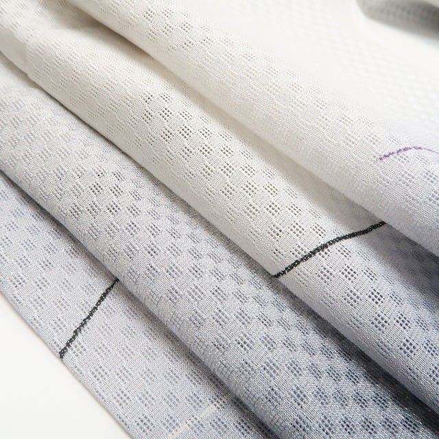 紗は二本の経糸で緯糸一本ずつをからめて織り上げたシンプルなもじり織で絽以上に透け感があり、カジュアルからセミフォーマルまで幅広く着られる夏生地のひとつ、織り柄のある紋紗、紬糸を使った紬紗などがあります。