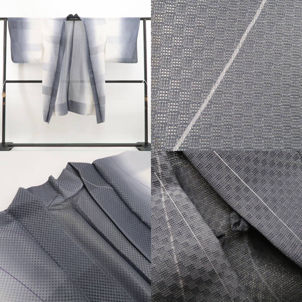 大人びたグレーの涼彩が放つ柔らかな艶、紗の透明感に濃淡を映す洗練のモダンデザイン、巧みな意匠に醸し出されるえも言われぬお洒落感は格別!それは今をときめく夏着物の奥行そのもの、お奨めです。