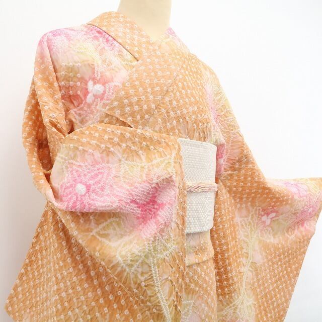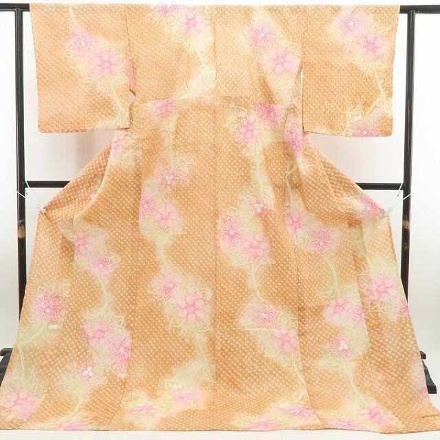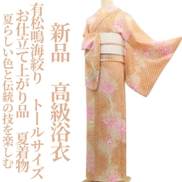 新品 有松鳴海絞り お仕立て上がり品 夏着物 綿”夏らしい色と伝統の技を楽しむ”仕付け糸付 トールサイズ 高級浴衣 6218