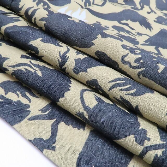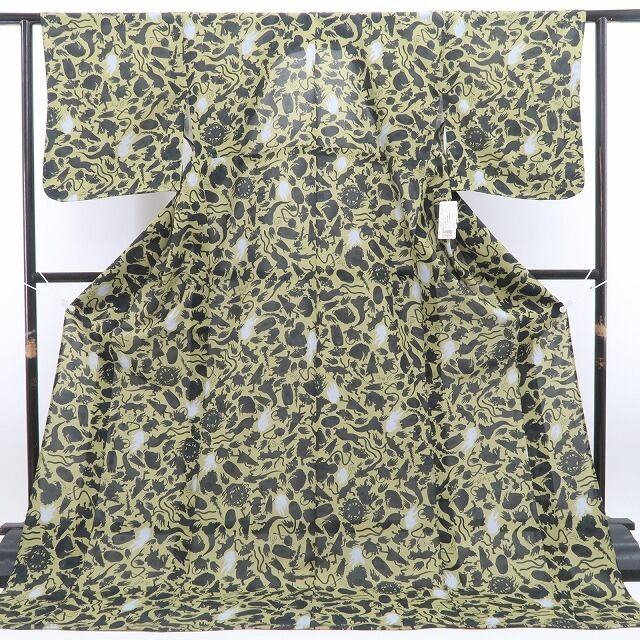 レトロに薫る枯草色に巧みな色使いで一歩控え、一歩前へ出て遠目には草花模様に見え、近づけば、目にも楽しく、ヒヤッとする“妖怪シルエット”がその正体を現し、一瞬でその場の雰囲気を盛り上げ、見る者の体感温度を下げると共に周りと差がつく個性を発揮...撫松庵セオアルファ洗える夏着物仕付け糸付浴衣でございます。