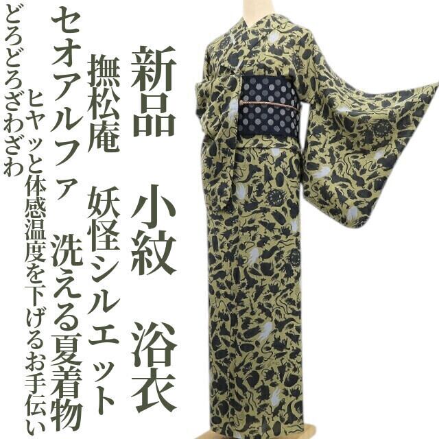 新品 撫松庵 妖怪シルエット セオアルファ 洗える夏着物 仕付け糸付 小紋“ヒヤッと体感温度を下げるお手伝い”浴衣 6223