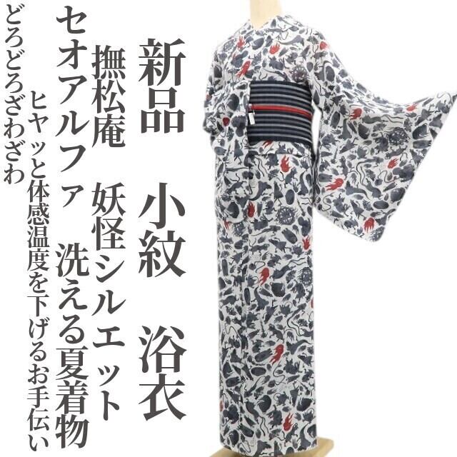 新品 撫松庵 妖怪シルエット セオアルファ 洗える夏着物 仕付け糸付 小紋“ヒヤッと体感温度を下げるお手伝い”浴衣 6224
