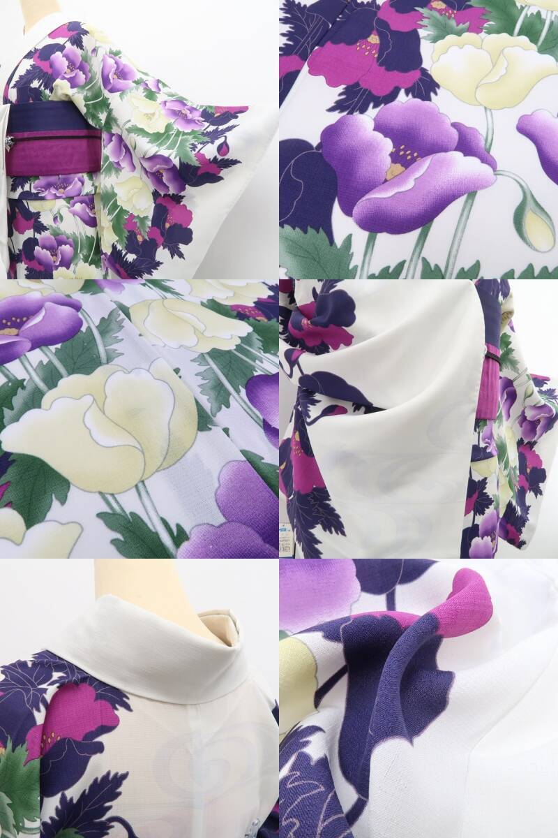 新品 撫松庵 片寄せポピー セオアルファ 洗える夏着物 仕付け糸付 付下げ“花びらを揺らすポピーに観世水”浴衣 6229