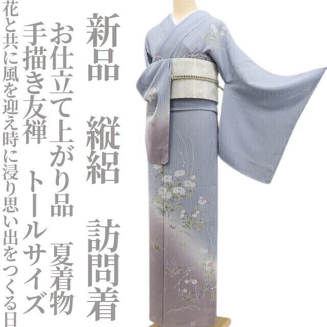 新品 縦絽 手描き友禅 お仕立て上がり品 夏着物 正絹 仕付け糸付 トールサイズ“風を迎え時に浸り思い出を作る日”訪問着 6233