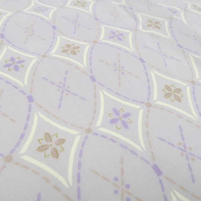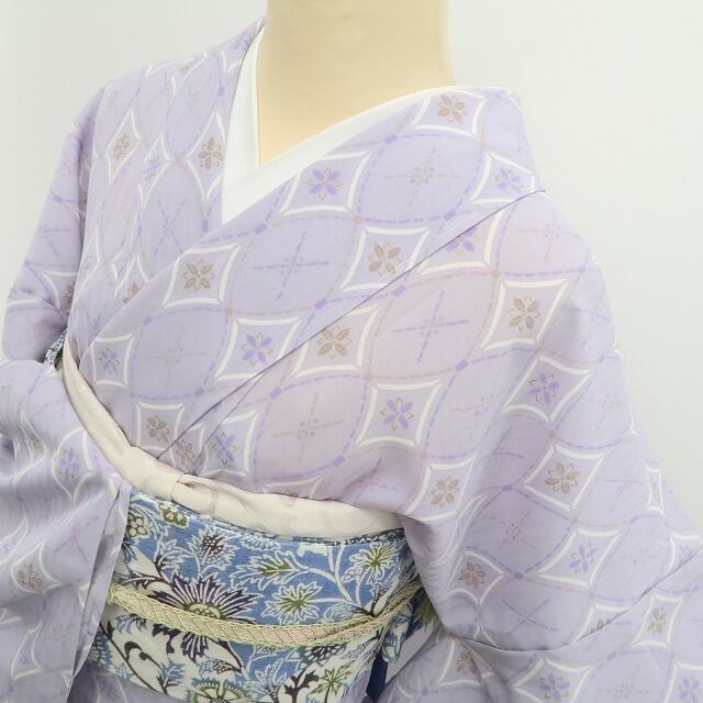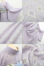女心を擽る柄を追いかけると、遠目にも伝わる涼やかさを生む紗の美しい透け感、ほんのりと神秘を漂わせるダイヤには花が宿り、吹き込む涼やかな風を受けてふっくらと膨らみ、その表情を変化させ、袖を通す者の所作でまたその美しさを増す、お仕立て上がり品夏着物。