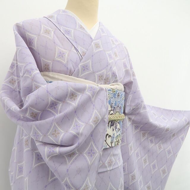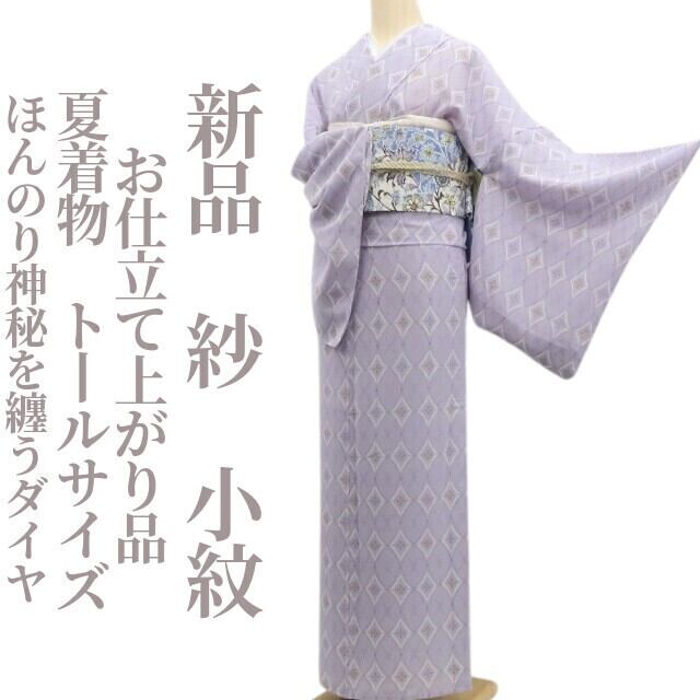 新品 紗 お仕立て上がり品 夏着物 正絹 仕付け糸付 トールサイズ“ほんのり神秘を纏うダイヤ”小紋 6235