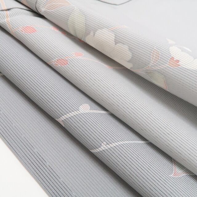 縦・横の糸の本数を減らして隙間を作り、風通しを良くした“絽”は、透ける部分が横縞になって表れる“絽目”が特徴で涼しげでさらりとした雰囲気、生地質を持ちます。7月、8月の盛夏に最適で、まだまだ気温の高い初秋頃まで活躍する薄物着物の代表格。