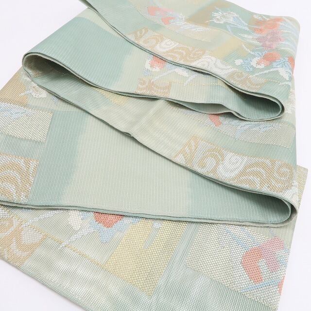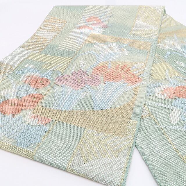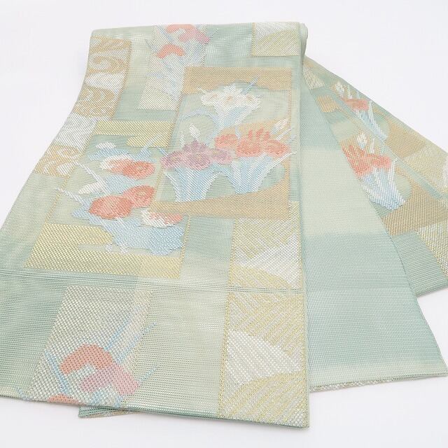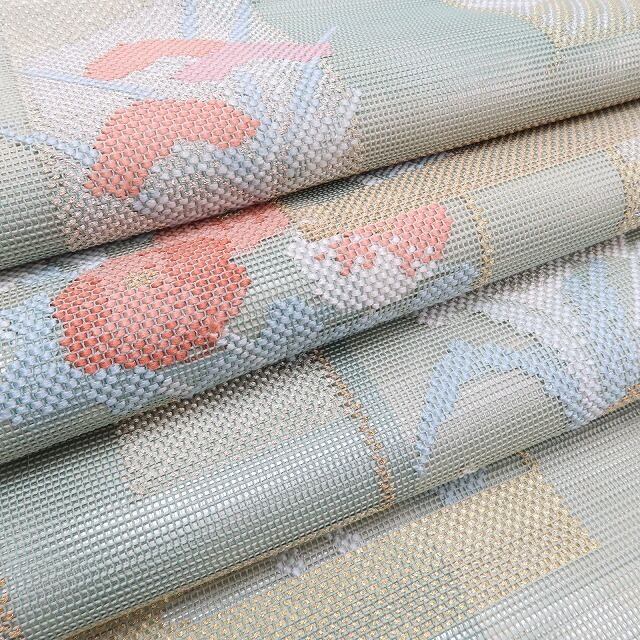 素材は、力を加えれば滑りにくい特徴を持つ“正絹”ですので緩みにくく締めやすく、柔らかいのでお着物も傷みにくく安心の“紗”夏着物正絹袋帯。