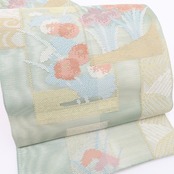 菊や菖蒲、松毬、観世水や波の鼓動を響かせる短冊や色紙が涼やかな風に運ばれ、まるで水面に浮かぶように花開き、その一つ一つを追いかけると目にも美しく、涼し気な紗の透け感に繊細に溶け込み、色を差し、濃淡を持つその表情で心の琴線に触れる歌を詠む帯姿は、いかがでしょう?