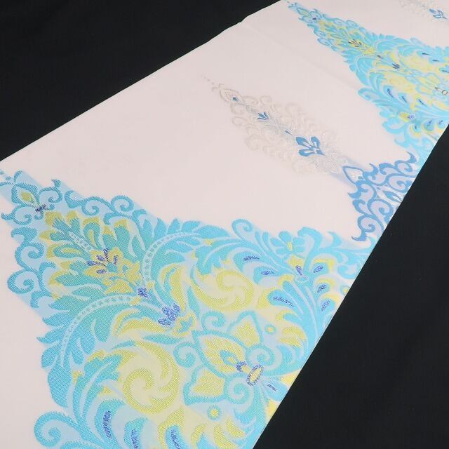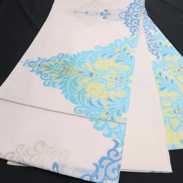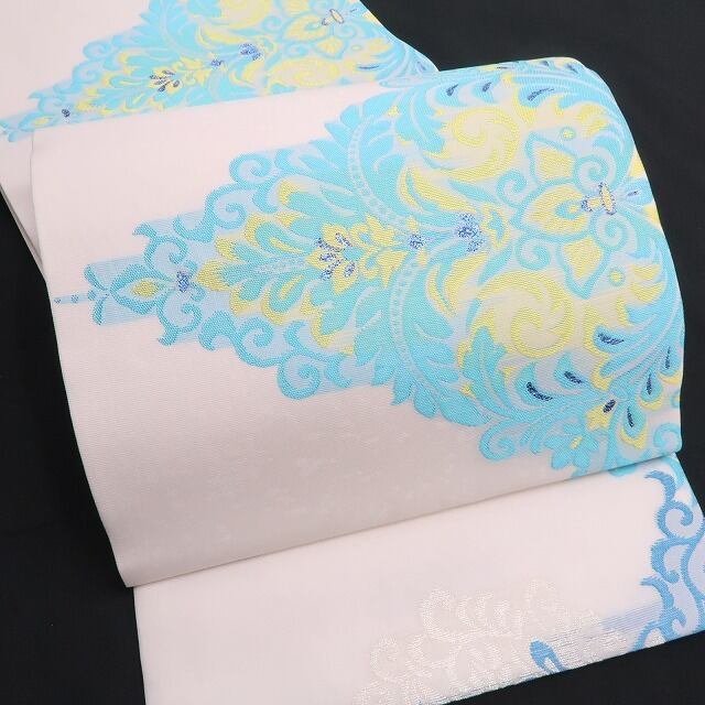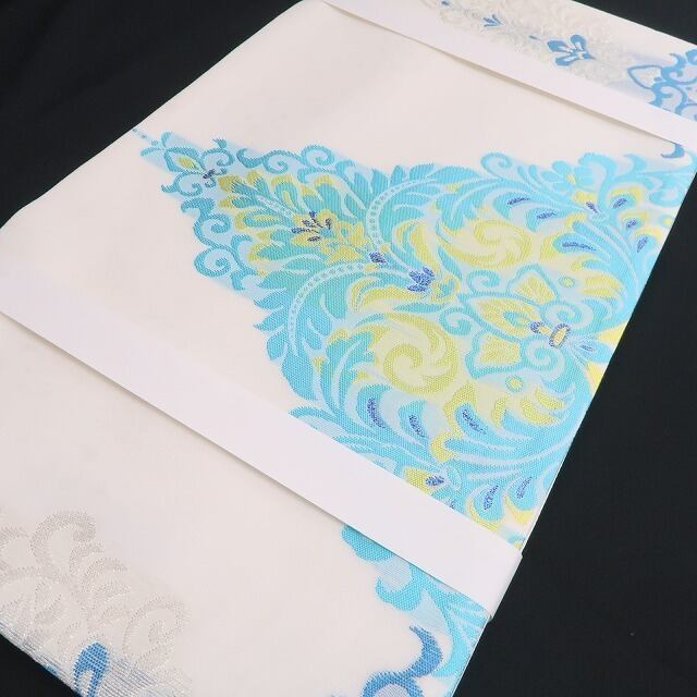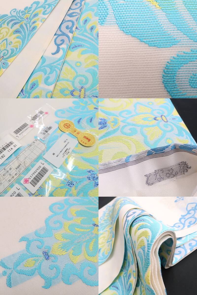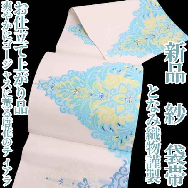 新品 紗 となみ織物謹製 お仕立て上がり品 夏着物 正絹“爽やかにゴージャスに薫る唐花のティアラ”袋帯 6246