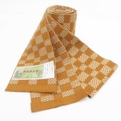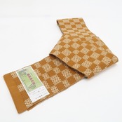 あたたかな心、独自の織技を感じる市松を黄橡色で伝える帯姿...。